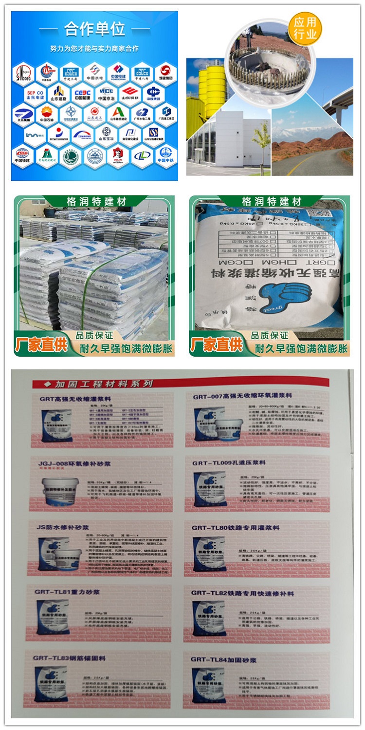 主要用于混凝土地面、路面的空鼓灌漿,以及橋面的裂縫修補。這種產(chǎn)品具有較好的補償收縮性、韌性、抗沖擊性和耐磨性,耐高溫和耐凍融循環(huán)性能好,耐久性?xún)?yōu)異。該產(chǎn)品利用水泥灌漿機進(jìn)行施工。